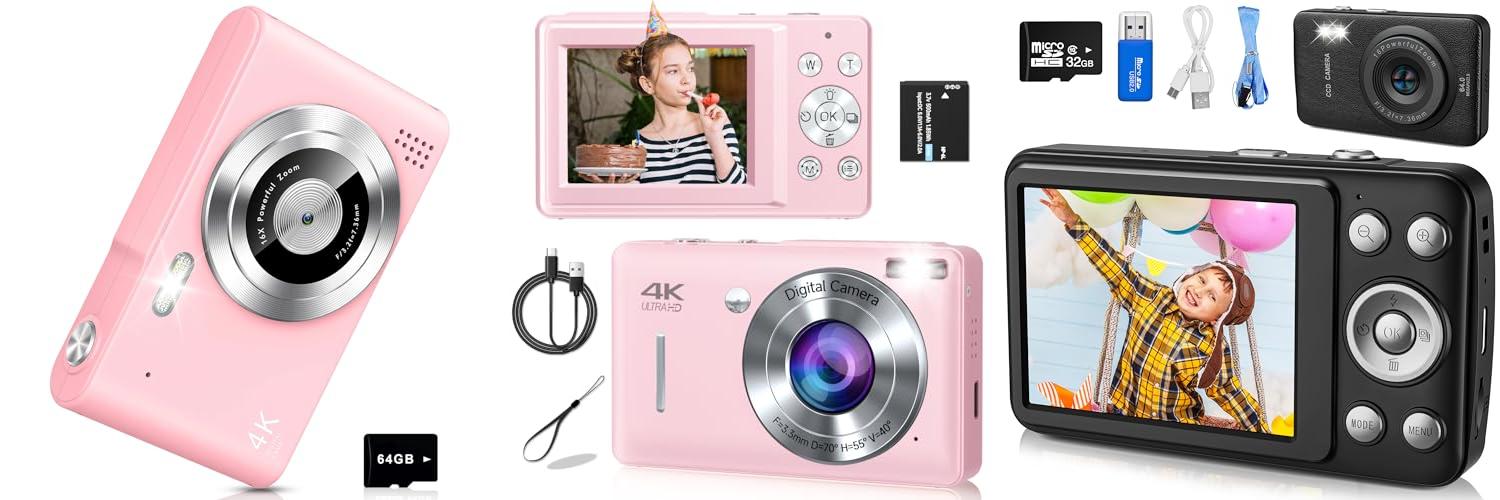 The Pink UHD 4K 48MP Digital Camera is a fantastic point-and-shoot camera designed specifically for young photographers. It’s packed with features that make capturing memories fun and easy, making it a great first camera for kids and teens.