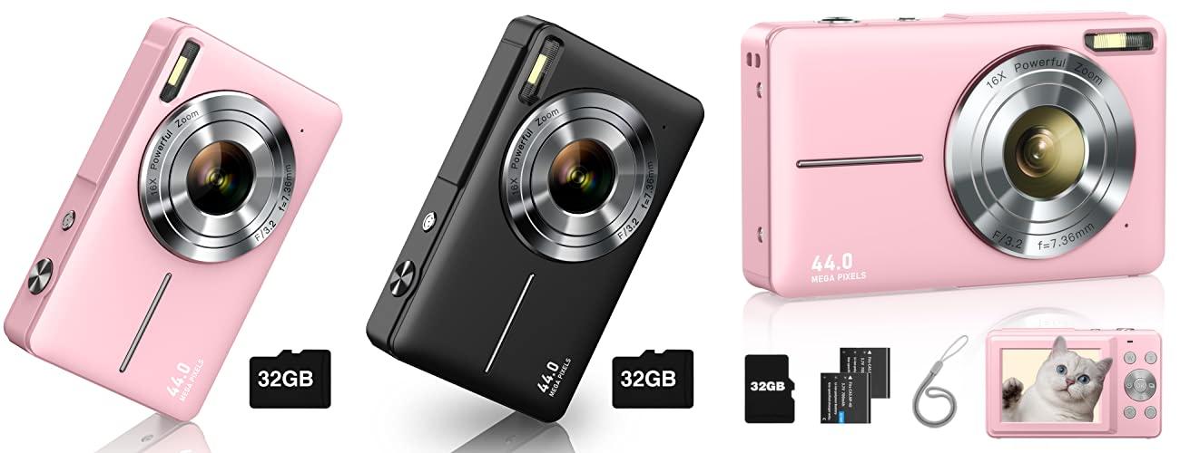 2. CAMKORY Small Digital 44MP Point and Shoot Compact Camera with 32GB SD Card