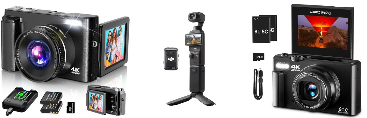 • For Travel Vlogging: Small, lightweight cameras with good battery life and weather resistance are ideal. Action cameras are also a good choice here.