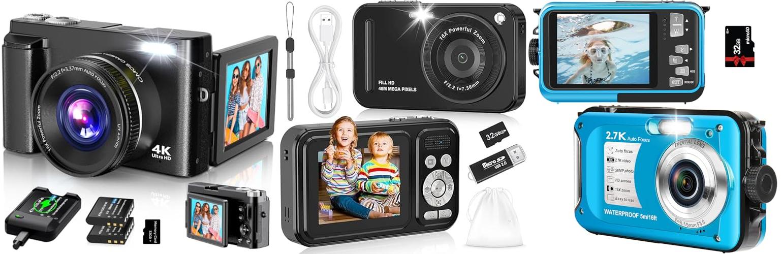 3. Digital Camera – 2.7K 56MP UHD Underwater Camera,16x Autofocus Camara with 32GB Card and a 650 mAh Battery