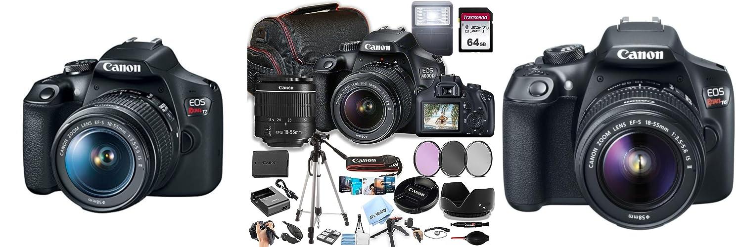 2. Canon EOS 4000D / Rebel T100 DSLR Camera w/EF-S 18-55mm F/3.5-5.6 Zoom Lens + 64GB Memory