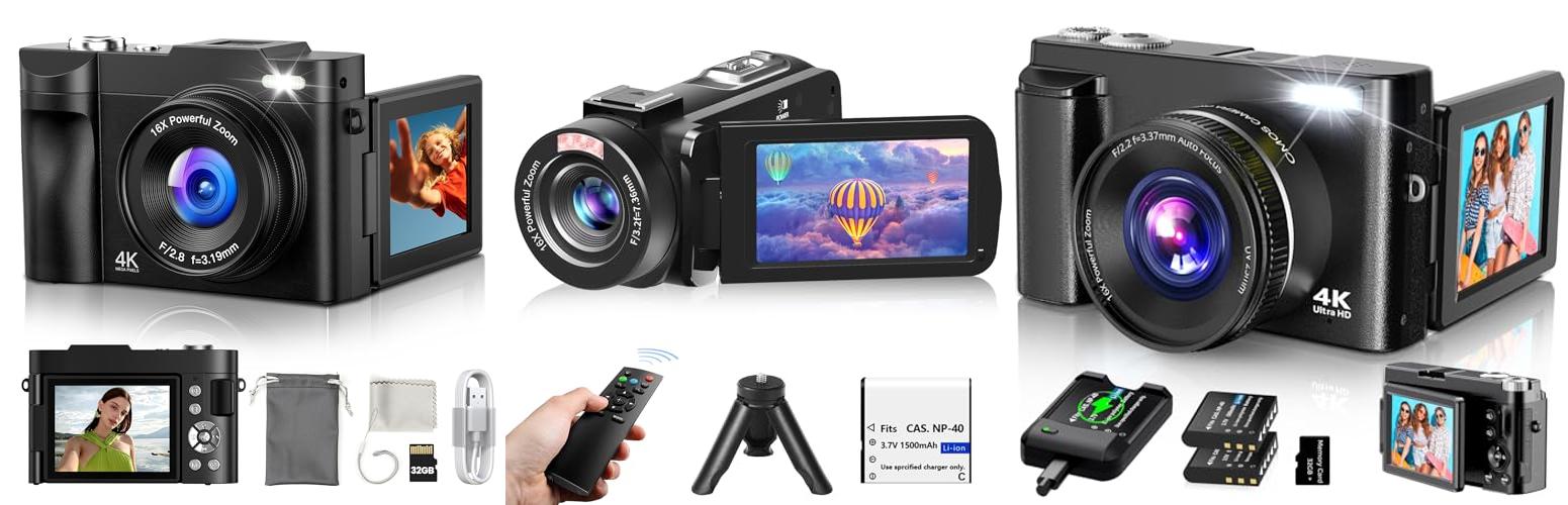 1. Digital Camera 4K for Photography Vlogging: 50MP Cameras for Video – 16X Zoom Photo Camera Gifts for Teens Ages 8-16 – 180°Flip Screen Compact Cámara – Point and Shoot Digital Cameras for YouTube