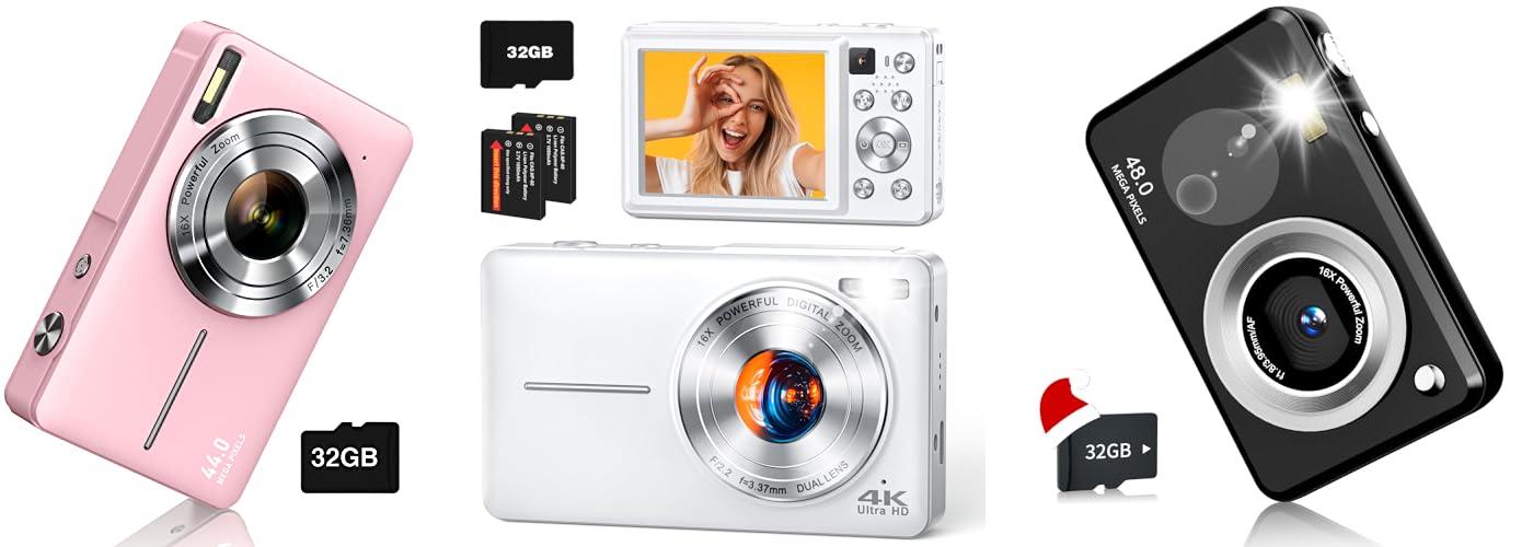 3. Digital Cameras FHD Camera for Kids Boys Girls Compact Digital Point and Shoot Camera with 16X Zoom 32GB Card Kids Camera Gifts for Kids