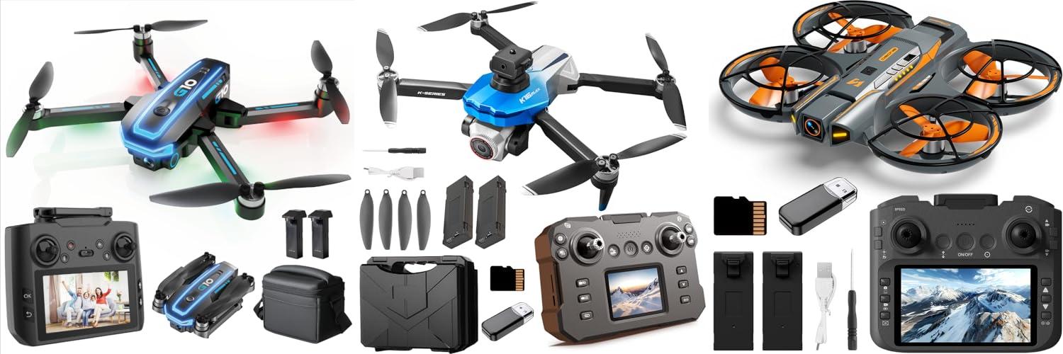 The K13 drone is built for new pilots. It comes with a controller that has a screen so you can see what you’re flying. This drone has strong brushless motors, making it powerful and long-lasting. It’s super easy to fly with features like one-touch takeoff and landing, and it can even do cool 360-degree flips. Plus, it stays at a steady height thanks to altitude hold.