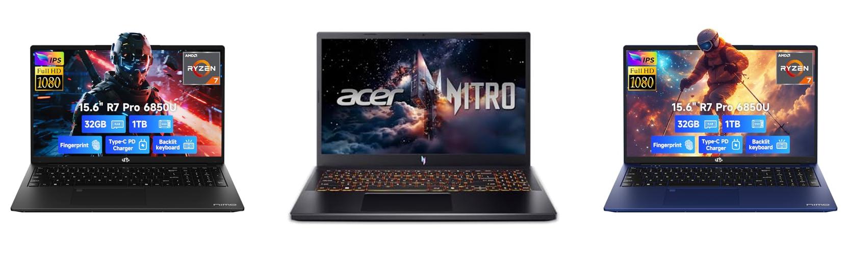 NIMO 15.6" Light-Gaming-Laptop, 8 Cores AMD Ryzen 7 Pro 6850U 32GB LPDDR5 RAM 1TB SSD (Beat i7-1360P Up to 4.7GHz) AMD Radeon 680M GPU IPS FHD Computer with 100W Type-C Backlit Keyboard Fingerprint