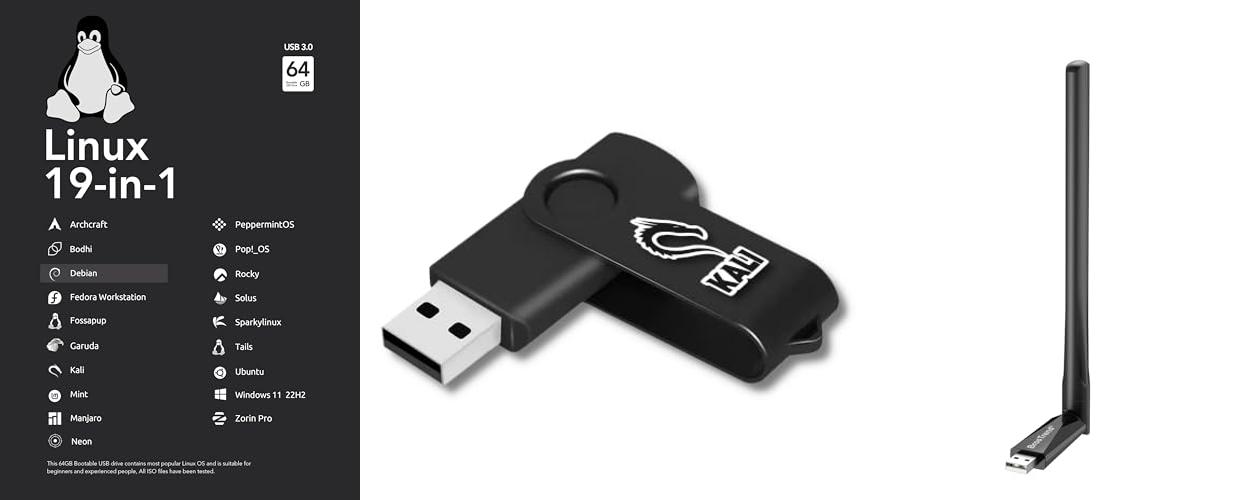 64GB - 19-in-1, Bootable USB Drive 3.2 for Linux & Windows 11, Zorin | Mint | Kali | Ubuntu | Tails | Debian, Supported UEFI and Legacy