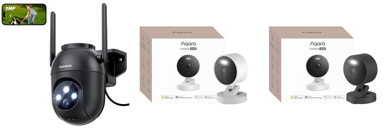 This 2-pack of wired outdoor security cameras offers clear 3MP video and advanced features to keep your home safe. With dual-band WiFi, 360° tracking, and color night vision, these cameras provide excellent surveillance day and night. They are designed to be easy to set up and use, making home security more accessible.